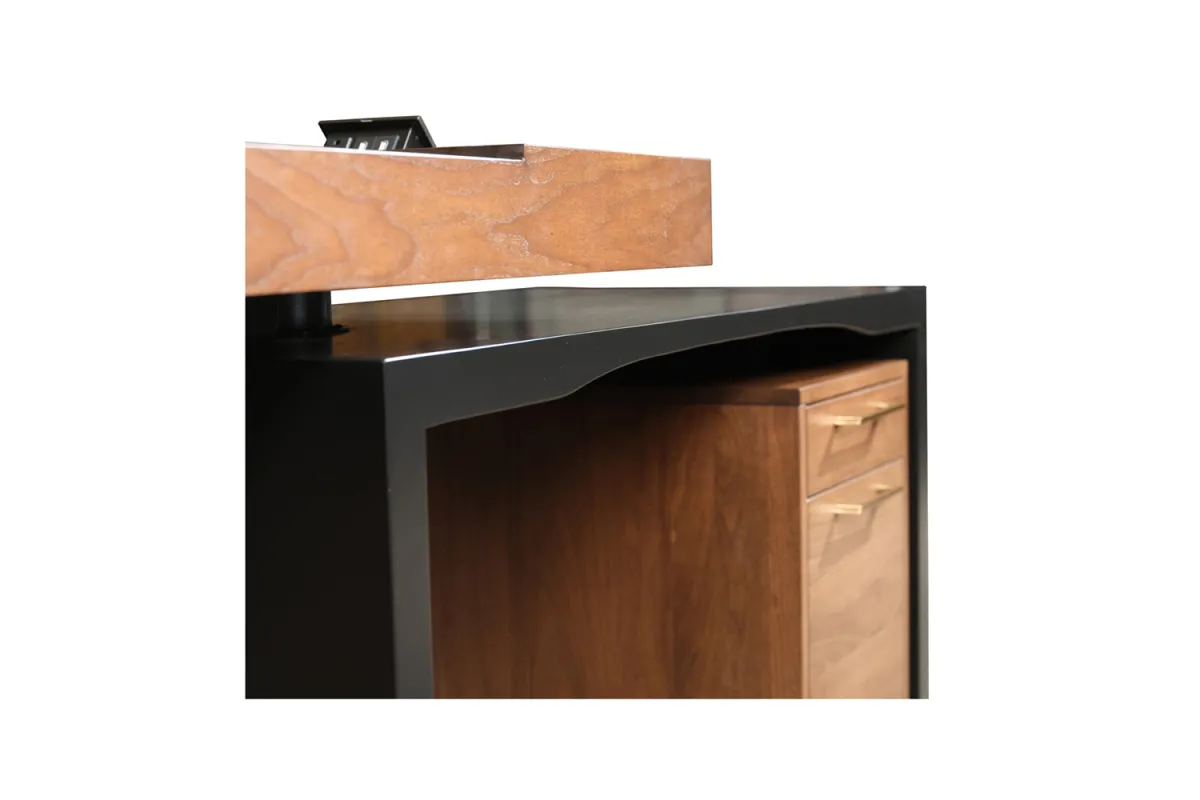 Furthermore, the optional Smart File enhances the desk's functionality. Measuring 20 inches wide, 17 inches deep, and 21 inches high, this storage unit complements the desk with matching walnut construction and OCS-105 Black Walnut Stain. Equipped with heavy-duty twin wheel casters for mobility, it also offers full extension soft close undermount slides, and is available in a stationary version for those who do not require mobility.