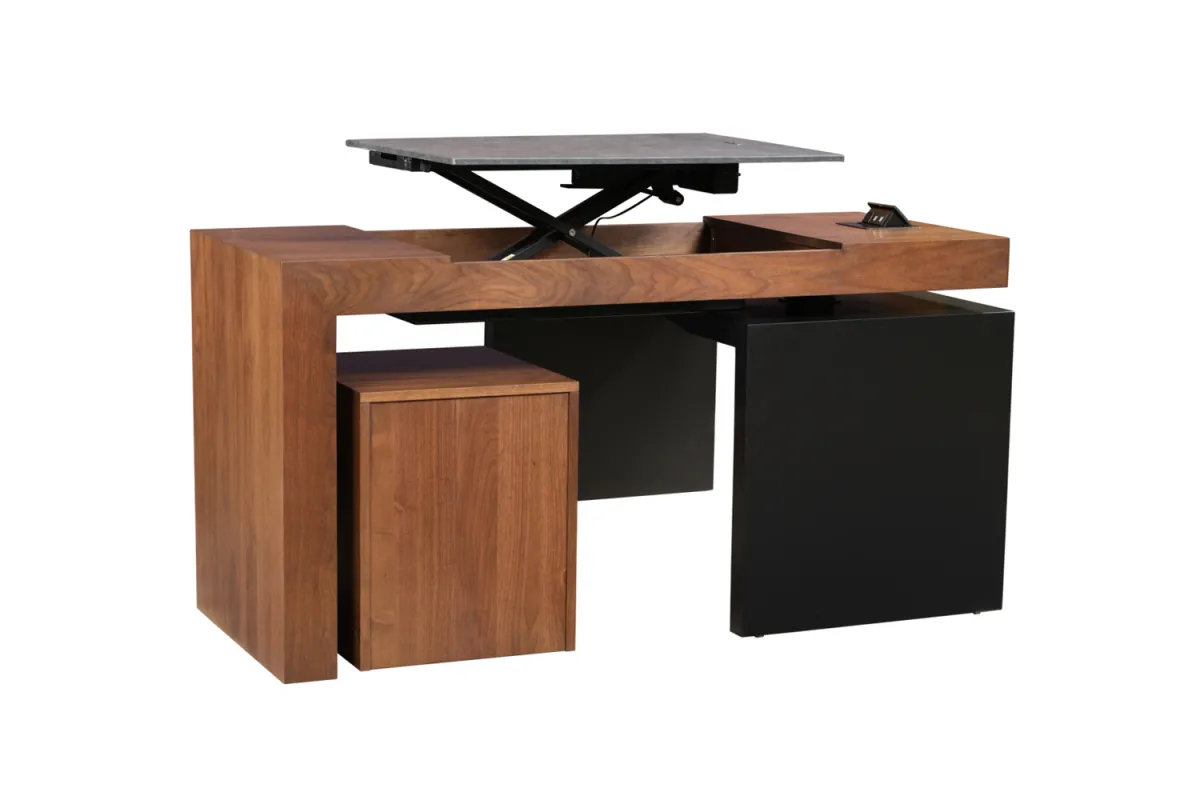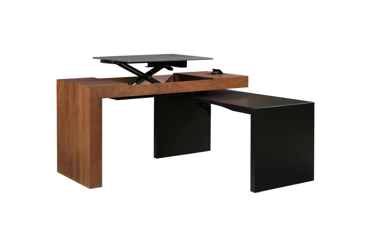 Engineered for versatility and modern functionality, the Smart Desk boasts a variety of advanced features. It effortlessly converts from a standard executive desk to an L-shape configuration within seconds, catering to diverse spatial requirements. For optimal ergonomics, it includes an electronic motorized lift system that allows users to switch between sitting and standing positions with the touch of a button. The whisper-quiet lift motor ensures smooth and silent adjustments, while the quick-power popup and complete 360° rotation contribute to the desk's unique adaptability.